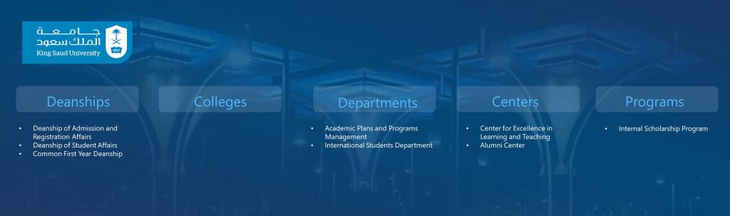 UNITS Deanship of Student AffairsDeanship of Admission and Registration AffairsCommon First YearCollegesAcademic Plans and Programs ManagementInternational Students DepartmentCenter For Excellence in Learning and TeachingAlumni CenterInternal Scholarship Program